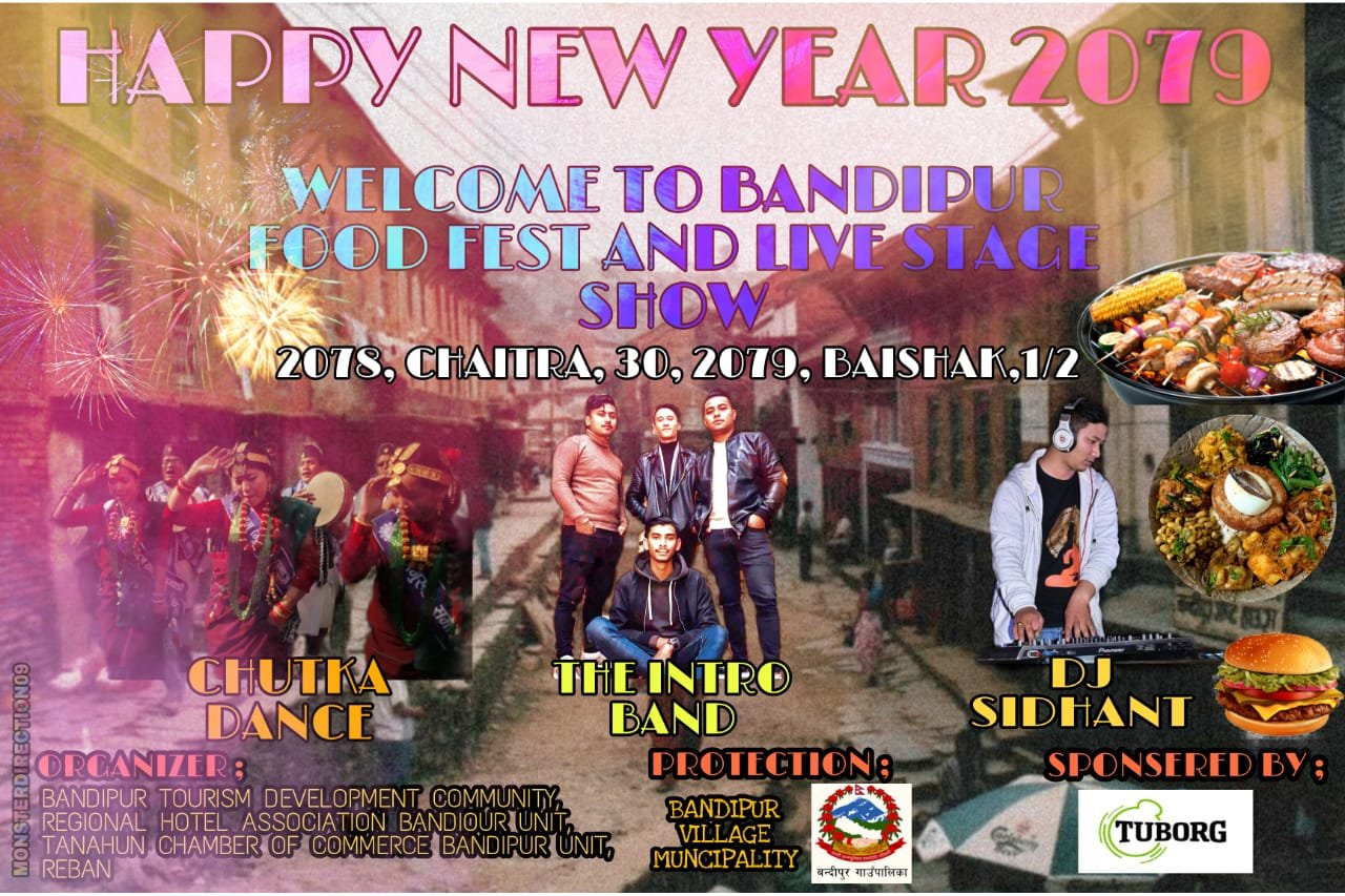 नेपाली नयाँ वर्षलाई स्वागत गर्दै पर्यटकलाई आकर्षित गराउने उद्देश्यसहित सडक खाना महोत्सव आयोजना गरिएको अध्यक्ष प्रधानले बताए । बन्दिपुर पर्यटन विकास समिति, क्षेत्रीय होटल संघ बन्दिपुर र तनहुँ उद्योग वाणिज्य संघ बन्दिपुर बजार इकाइको संयुक्त आयोजनामा सडक खाना महोत्सव आयोजना गरिएको हो ।