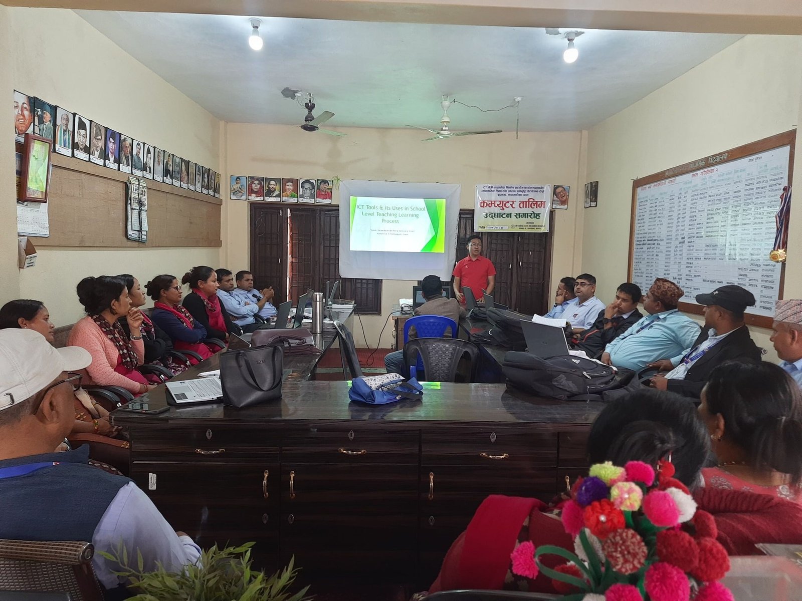 उक्त समारोहमा तालिम कार्यक्रमको ओैचित्यमाथि प्रकाश पार्दै विद्यालय व्यवस्थापन समितिका अध्यक्ष पवनकुमार राईले निर्धारित समयको कम्प्युटर तालिम कार्यक्रमबाट शिक्षकहरूको सूचना तथा सञ्चार प्रविधि सम्बन्धी सिप एवम् दक्षता अभिवृद्धि हुने र कक्षाकोठालाई प्रविधिमैत्री बनाउने विद्यालय व्यवस्थापन समिति र विद्यालय प्रशासनको चाहना साकार बन्न सक्ने कुरामा आफू विश्वस्त रहेको विचार व्यक्त गर्नुभयो ।