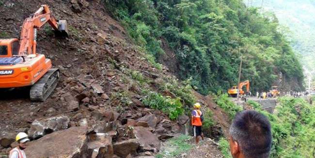 निरन्तर बर्षाकोकारण पृथ्वी राजमार्ग अबरुद्ध बाटोखोल्न दुई दिन लाग्ने अनुमान