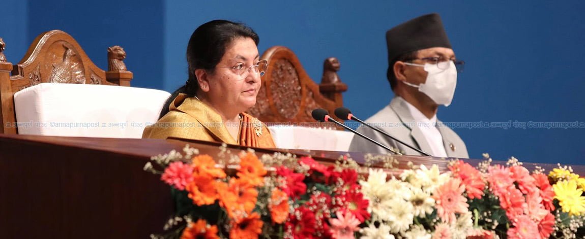 ‘लिपुलेक कालापानी र लिम्पियाधुरा नेपालको भूमी हो’, नीति तथा कार्यक्रम प्रस्तुत गर्दै राष्ट्रपति भण्डारीले भनिन्, ‘त्यसलाई प्राप्त गर्न ठोस कदम चालिने छ । तद अनुसार नै छुटेको भूमि कायम गरी नेपालको नक्सा सार्वजनिक गरिने छ ।’